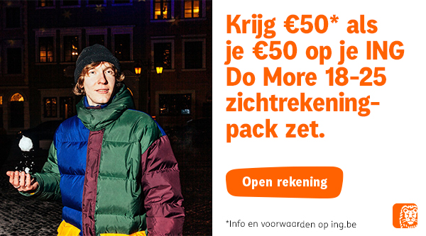 Open het ING Do More Pack 18-25, stort er 50€ op en je krijgt er 50€ bovenop! Een topdeal waar je blij van wordt! 🎄🤩
