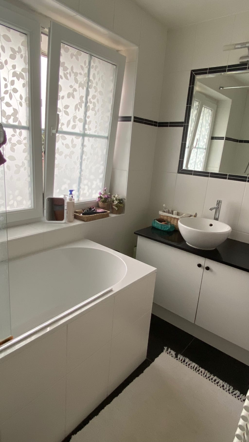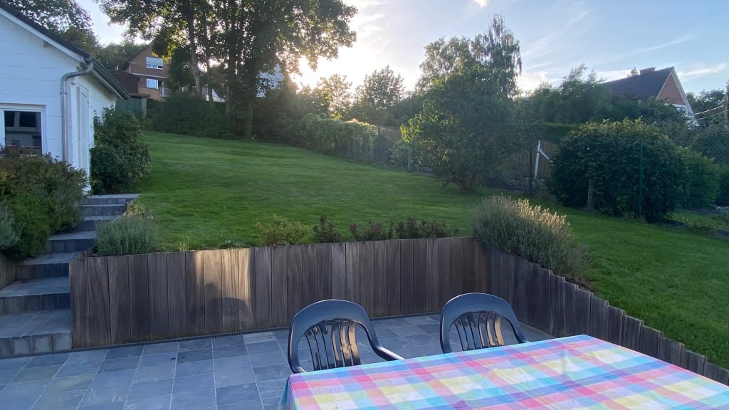 Vous aurez accès aux autres parties de la maison, notamment le living, la cuisine et la petite salle à manger qui donnent sur la terrasse et le jardin orientés sud-ouest. Vous pourrez profiter de la terrasse et du jardin à tout moment de la journée. La salle de bain est à partager.