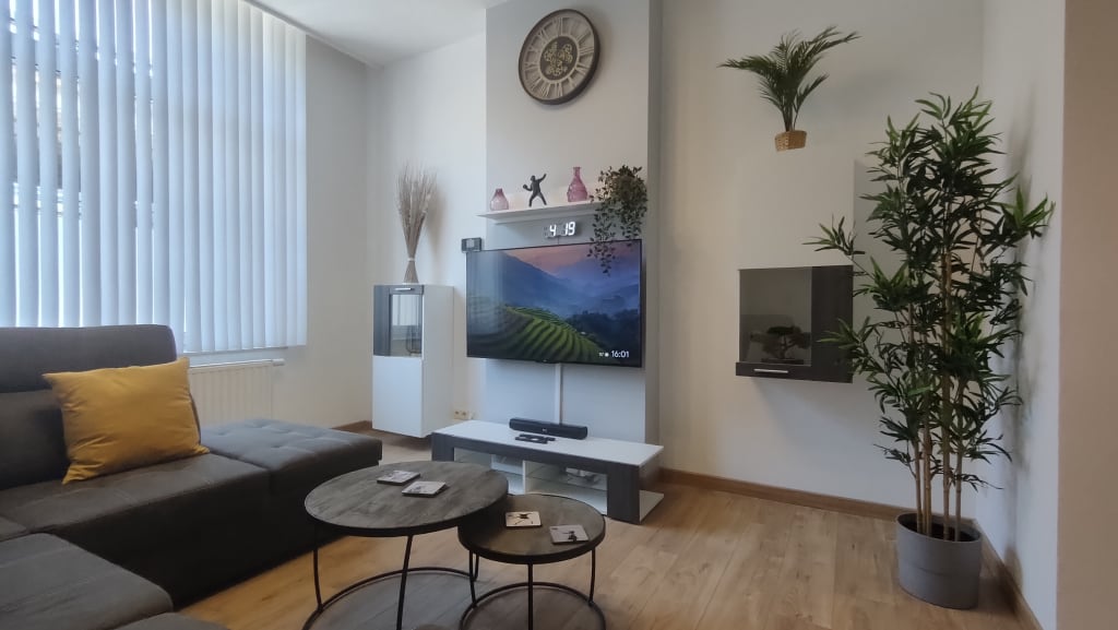 • Salon (grand canapé d’angle, Smart TV connectée avec catalogue VOD)