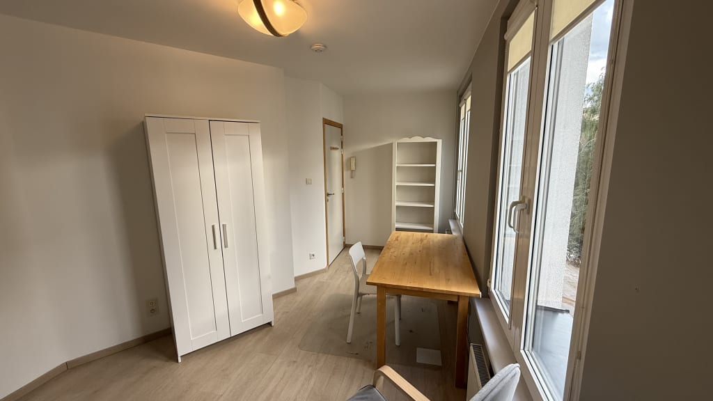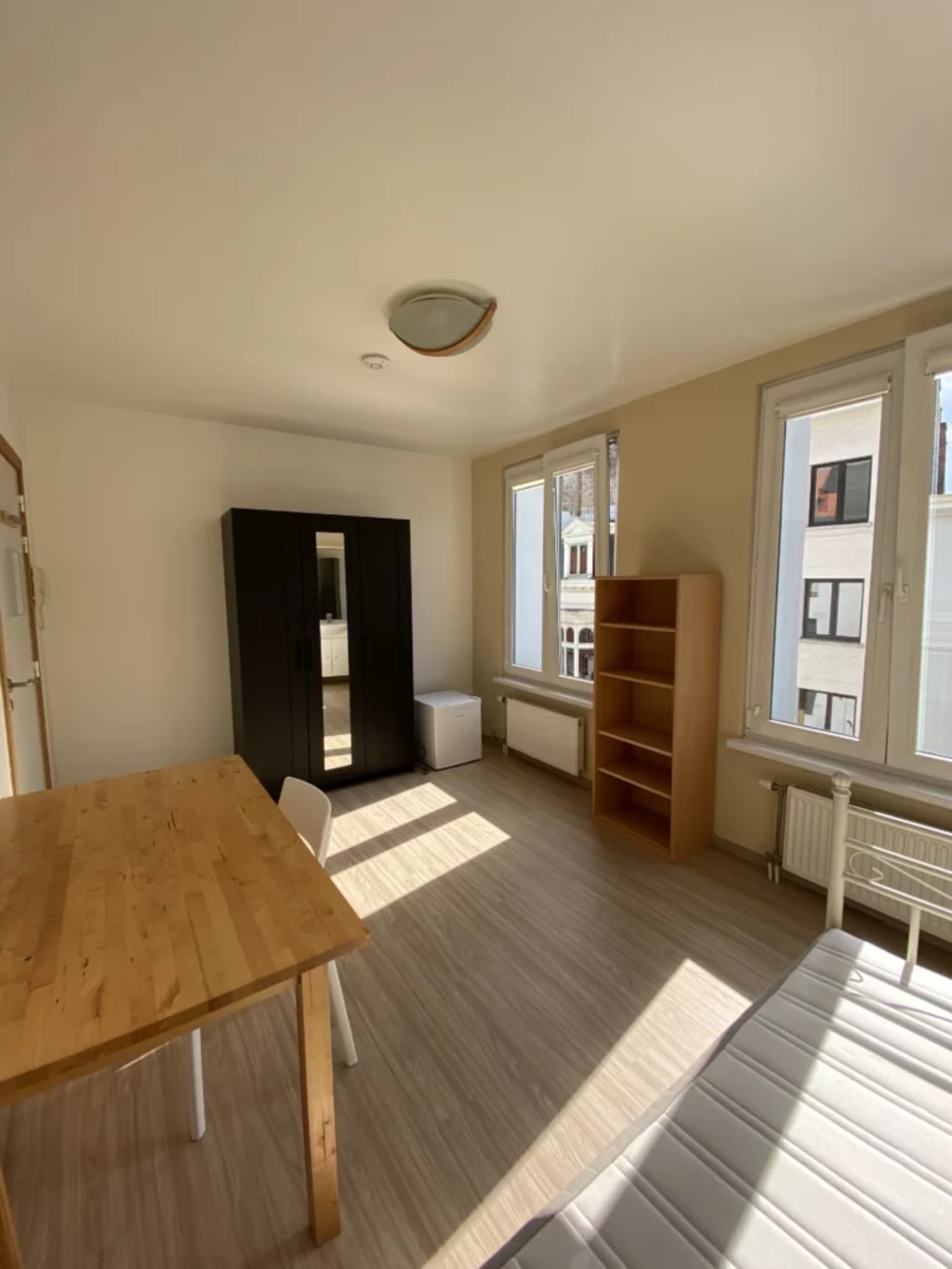 from March 1 to August 31. cosy, small student room for 1 quiet person. Located on the south of Antwerp (near old courthouse and Amerikalei), very quiet and safe building. Furnished room 13m², shared bathroom and toilet to be shared with 1 person, shared kitchen, bicycle shed. Included costs; central heating, electricity, internet wifi, water, fire ins. building, use of kitchen and bicycle shed. price 470,-€/month. Extendable for 12 months after August. (1/09-31/08)