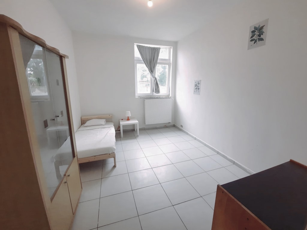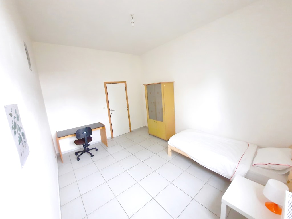 (Meublé : lit avec matelas, sommier, table de chevet, bureau, siège, garde-robe 2 porte, étagère)