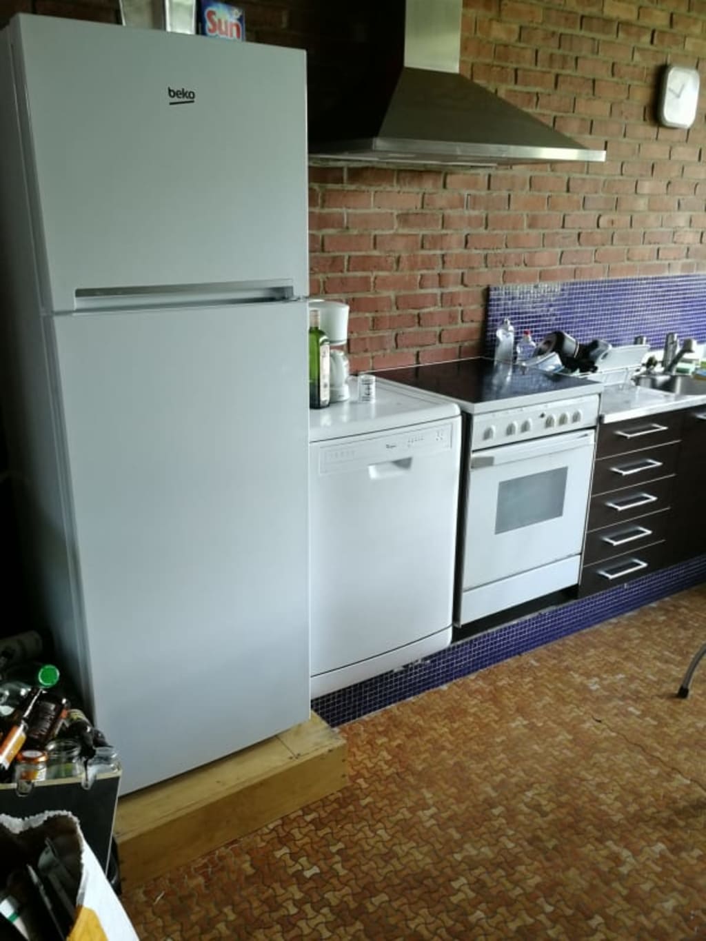 la cuisine équipée avec frigidaire, congélateur , four combiné (micro ondes + four) ,cuisinière,lave vaisselle