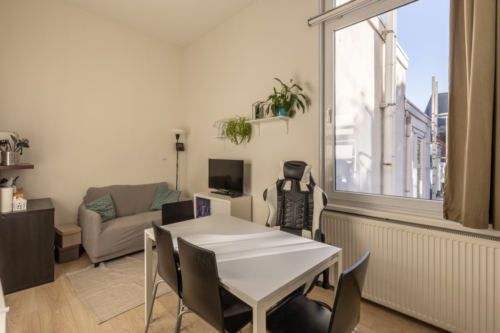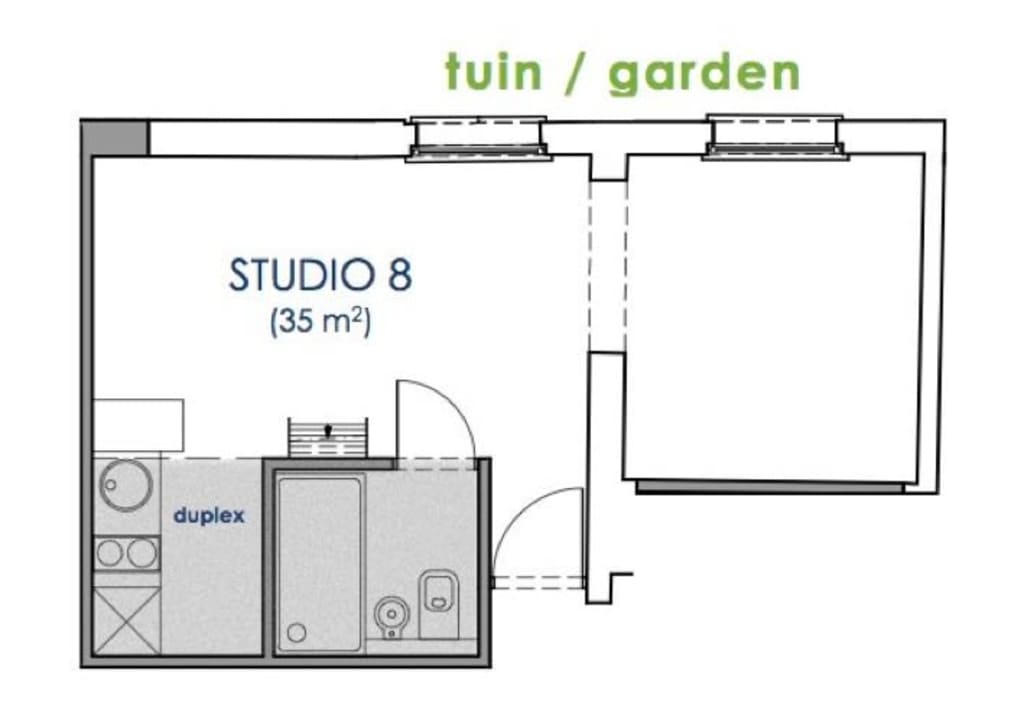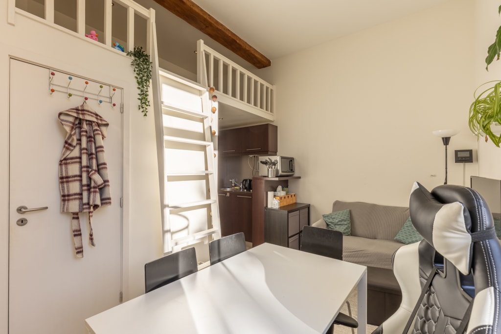 Studio 8 (35m² mezzanine and seperate sleeping room) in 16th century house downtown Antwerp (historic city centre). 5 minutes walk from universities, schools, shops, Groenplaats with statue of Rubens. Small scale student house (14 studios) with garden + bbq, common kitchen and lounge room. Every studio has its own bathroom, kitchenette, a flatscreen-tv with cable television and a personal WIFI-network with high-speed internet. The building has also been equipped with camera security, fire detection and an acces control system with badges