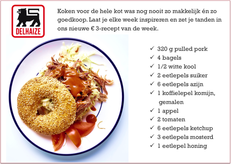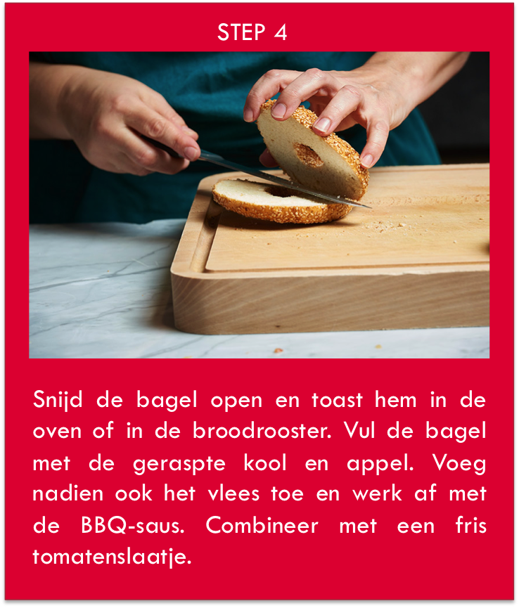 >Het recept van de week voor op kot: Bagel van "pulled pork" met witte kool en BBQ-saus