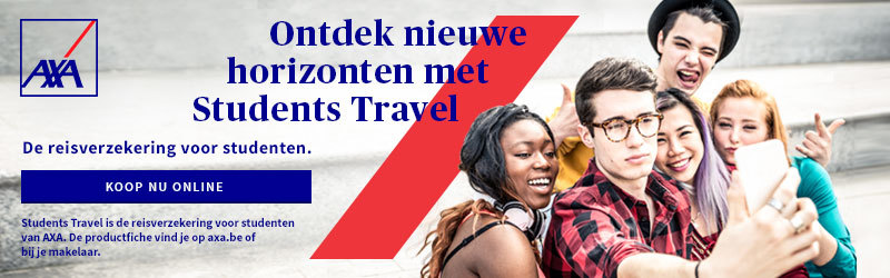 Heb je je keuze gemaakt tussen werken, een taal studeren of gewoon een sabbatjaar? Ben je klaar om op avontuur te gaan? Waarschijnlijk heb je dan al eens nagedacht over je paspoort en misschien een visum.... Maar heb je ook al nagedacht over een reisverzekering? AXA heeft ‘Students Travel’ gelanceerd, een reisverzekering die je dekt als je naar het buitenland gaat om een stage te lopen of te werken (mits je geen vast contract hebt). Students Travel biedt in totaal vier dekkingen: bijstand in geval van diefstal/verlies van bagage, vervoersbewijzen, reisdocumenten en betaalmiddelen, dekking bij annulering of onderbrekning van het verblijf, in geval van medische kosten/ziekenhuisopname en in geval van een ongeval (met gevolgsymptomen). Students Travel dekt je overal ter wereld voor een jaar als onderdeel van je taalreis, vrijwilligersproject of sabbatjaar.